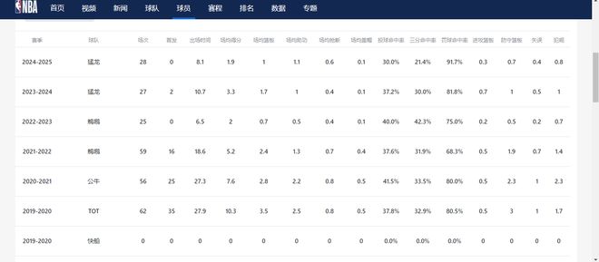 上赛季,他代表猛料出战28场常规赛,场均可得到1.9分1篮板1.1助攻。