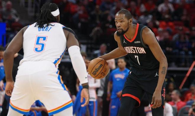今天主教练乌度卡延续了首战战略思路,不过没有把亚当斯摆上首发。而是上奥科吉去应对五大速度不足的缺陷。火箭希望用体型和篮板优势拖慢雷霆节奏,逼迫对手打阵地战,减少快攻和转换得分的机会。火箭首发调整为奥科吉和阿门搭档后场,史密斯出任小前锋,锋线搭配杜兰特,内线则由申京坐镇。从数据上看,火箭的篮板策略确实奏效。全场火箭狂抢60个篮板(其中23个前场篮板),大幅领先雷霆的44个篮板(前场仅7个),足足多出15次二次进攻机会。