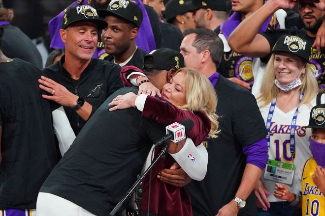 只能说,若不是詹姆斯空降,若不是詹眉联手在园区帮助湖人队再次夺冠,帮助湖人实现冠军、收视率、商业价值多项丰收。不夸张的说,没有詹姆斯,湖人根本卖不了100亿美元。这还不是最劲爆的消息,在2021年7月份,湖人管理层交易得到威少之后,珍妮·巴斯和詹姆斯的关系进一步疏远。因为珍妮·巴斯和其闺蜜操刀了这一笔交易,他们想着是为了安抚詹姆斯,但结果我们都知道了,湖人队当赛季最终33胜49负,无缘季后赛。而让珍妮·巴斯愤怒的,是詹姆斯的态度。她觉得詹姆斯想要撇清自己在威少交易中的责任,认为詹姆斯缺乏担当。但问题是珍妮·巴斯决定的交易,为什么要让詹姆斯背锅呢?