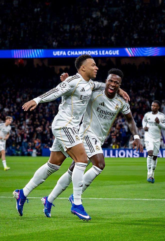 第26分钟,居莱尔中圈一脚长传打穿对手防线,维尼修斯左路反越位长途奔袭后无私分球,姆巴佩中路无人盯防轻松推射梅开二度,2:0!姆巴佩本赛季至今在欧冠出场6次打进11球,这不但刷新了他个人单赛季欧冠的进球数纪录,同时也让他超越了1958-59赛季的方丹,成为欧冠历史单赛季进球数第二多的法国球员,仅次于2021-22赛季欧冠打入15球的本泽马。