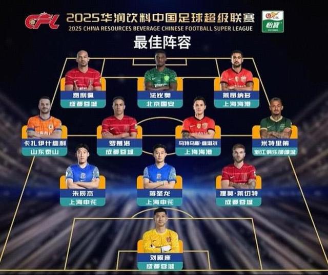中超本赛季最佳阵容的评选结果也都在合理范畴。具体阵容如下:刘殿座(门将);朱辰杰、蒋圣龙、莱切特(后卫);卡扎伊什维利、罗慕洛、维塔尔、米特里策(中场);费利佩、法比奥、莱昂纳多(前锋)。