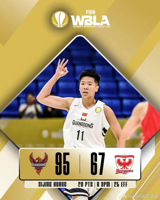 2025年国际篮联亚洲女子篮球联赛,以上赛季WCBA联赛冠军身份代表中国出战的广东女篮在决赛中以95比67战胜日本富士通红浪女篮,夺得本次比赛冠军。