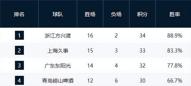 广厦领跑,广东第3,山东崛起逼近前4,辽宁跌至第12,2黑马很稳