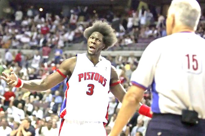 他从不是靠技巧征服对手的球员,而是以暴躁的气场震慑全场:队友陷入争执时,他永远是第一个冲上前的 “打手”;对手稍有挑衅,他便会用推搡、怒吼甚至过激动作回应。这种刻在骨子里的暴戾,让他成为联盟公认的 “麻烦制造者”,也成了活塞队 “铁血防守” 背后,最令人忌惮的暴躁底色。