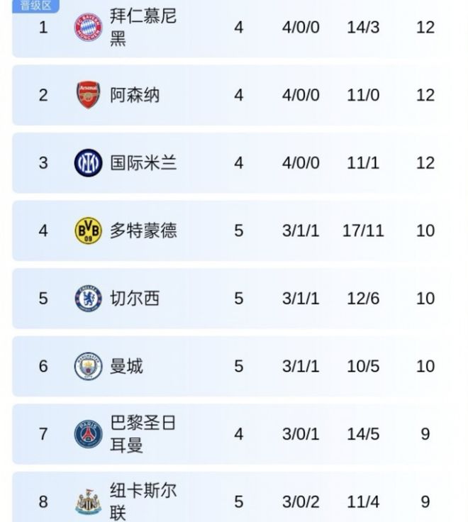 英超6队参加本赛季欧冠,目前排名前8的英超球队有阿森纳、切尔西、曼城以及纽卡。反观西甲球队,5队跻身欧冠,皇马3胜1负排第9,巴萨2胜1平2负第15,马竞2胜2负第20,毕尔巴鄂竞技1胜1平3负第28,比利亚雷亚尔1平4负排名倒数第3。