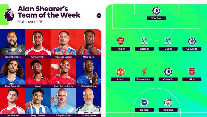 北京时间11月4日,英超官方公布了希勒评选的英超第10轮比赛最佳阵容。