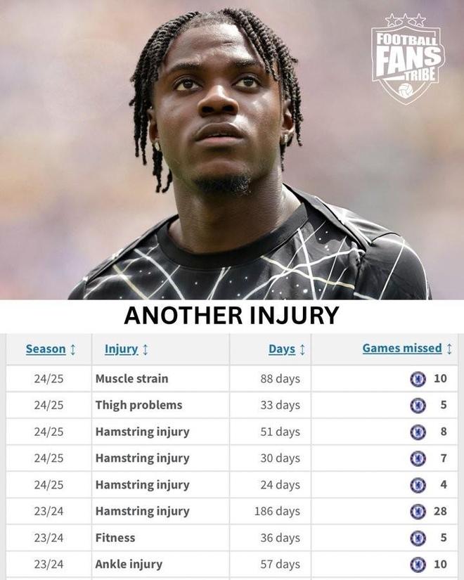 根据统计,自从加盟切尔西以来,拉维亚已经遭遇了9次伤病,并且从未代表球队打满90分钟。