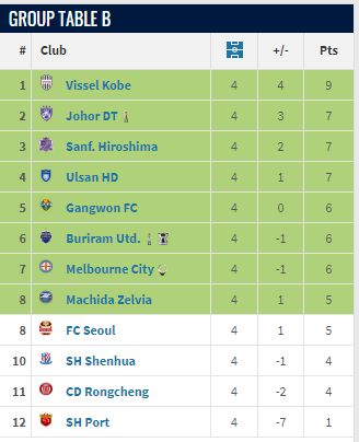 前4轮之后,上海海港以1分在东亚区垫底,而上海申花、成都蓉城分别排名第10位、第11位,三支中超球队包揽了东亚后三位。